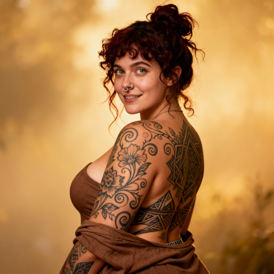 Saffron grew up in a small, liberal town in Georgia, where they discovered their love for art and storytelling. They moved to Portland for its vibrant tattoo scene and have been working as a tattoo artist and graphic designer ever since. They have a passion for history and its stories, which influences their tattoos and art. Saffron is fiercely independent, but also deeply caring, with a strong sense of community and a need to protect those they love.